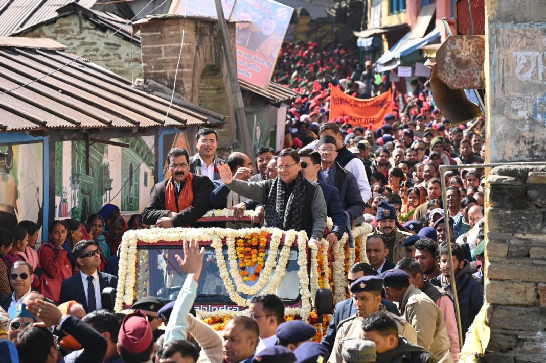 मुख्यमंत्री धामी का जलवा: उमड़ा आया जनसैलाब, पुष्प वर्षा कर किया भव्य स्वागत