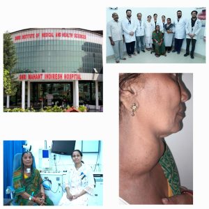 श्री महंत इन्दिरेश अस्पताल के नाक कान गला रोग विभाग की विभागाध्यक्ष डाॅ त्रिप्ती ममगाईं व उनकी टीम ने एक मरीज़ के गले से एक किलो का थायराइड ट्यूमर निकाला