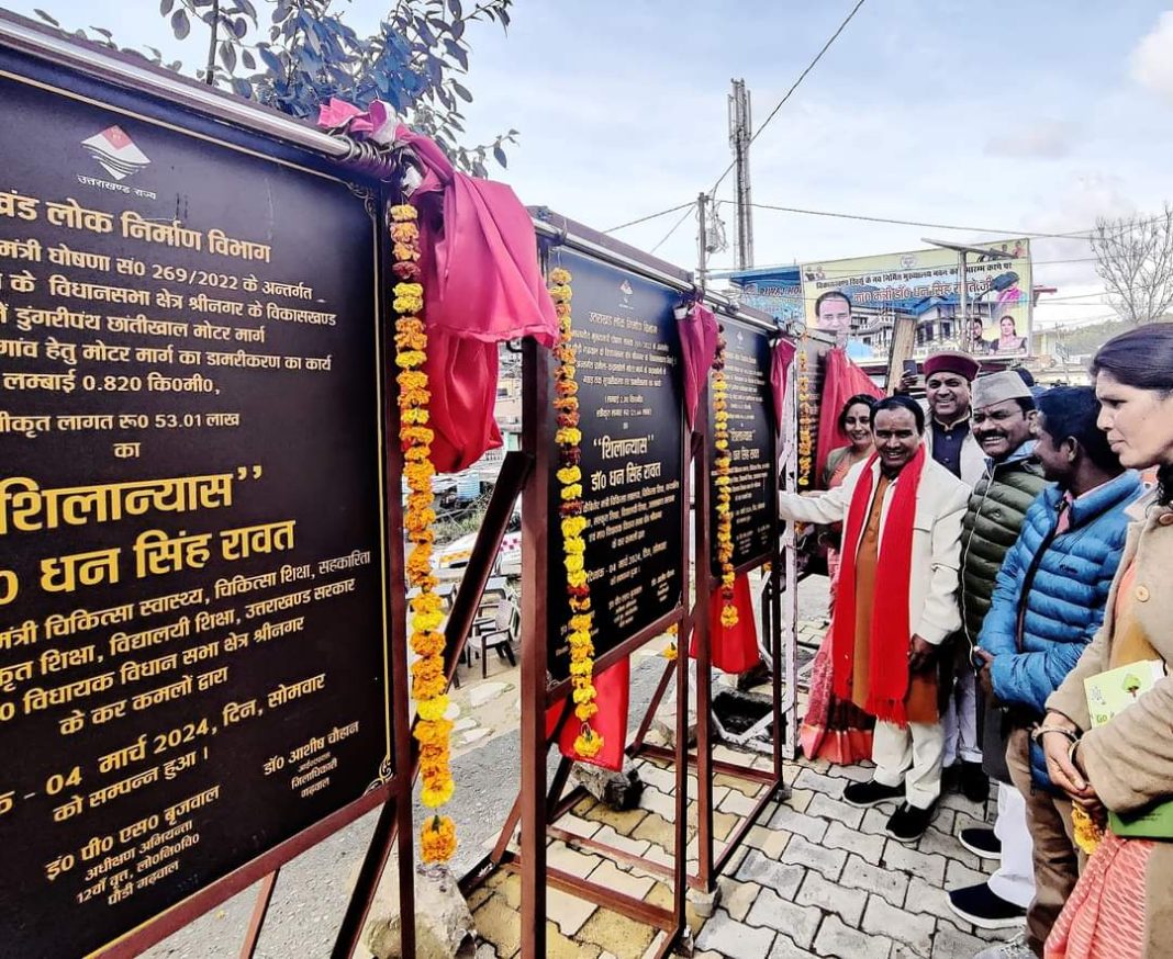 प्रदेश के उच्च शिक्षा, स्वास्थ्य मंत्री डॉ. धन सिंह रावत ने अपने क्षेत्र भ्रमण के दूसरे दिन श्रीनगर विधानसभा के अंतर्गत विभिन्न विकास कार्यों का लोकार्पण व शिलान्यास किया। उन्होंने कहा कि केंद्र व राज्य सरकार विकास कार्यों की ओर निरंतर कार्य रही है। जिसका लाभ सीधा आम जनमानस को मिल रहा है।