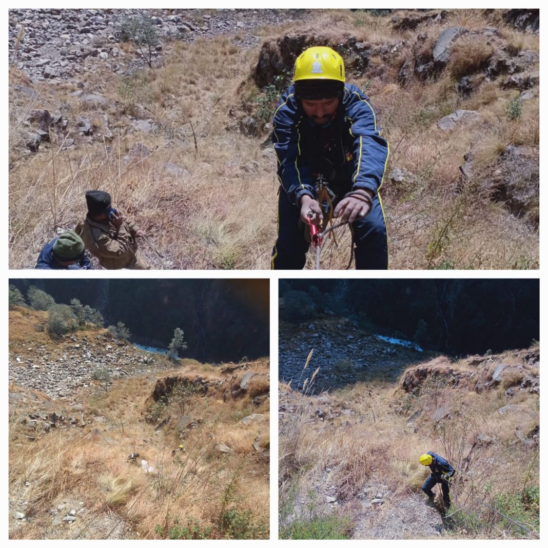 SDRF टीम द्वारा त्वरित कार्यवाही करते हुऐ तत्काल रोप द्वारा खाई में उतरकर उक्त वाहन पहुँच बनाई। वाहन में 02 व्यक्ति सवार थे जिनकी मौके पर ही मृत्यु हो चुकी थी। SDRF टीम द्वारा दोनों व्यक्तियों के शवो को स्ट्रेचर के माध्यम से पैदल मार्ग से होते हुए मुख्य मार्ग तक लाकर जिला पुलिस के सुपुर्द किया गया।